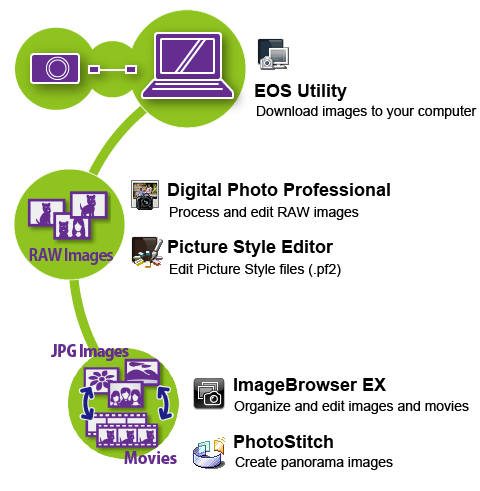 | Picture Style Editor | You can edit Picture Styles and create and save original Picture Style files. This software is aimed at advanced users who are experienced in processing images. |