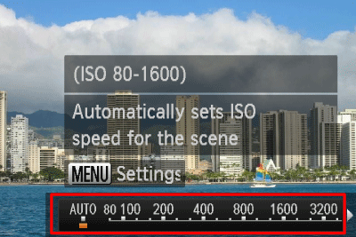 ) appears when you press the <Shutter Button> halfway, it is recommended to gradually raise the ISO speed in increments such as [ISO 80], [ISO 100], etc., and then set the [ISO Speed] when the camera shake warning icon (