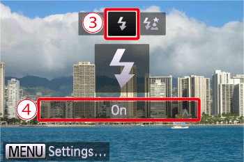 Operate the <directional buttons> to select the [Flash On] (