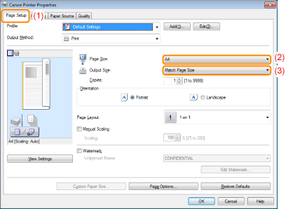 - The specified settings apply only to data to be printed from the same application. Exiting the application resets the changed settings to the default settings. For details on the procedure for changing the default values for printing preferences, see the "e-Manual" (HTML manual) in the CD-ROM supplied with the printer.