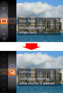 ) button, choose [Drive Mode] in the menu, and then choose [Continuous] (