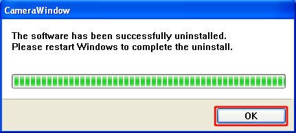 - Make sure to restart your computer after deleting [CameraWindow]. If the computer is not restarted after uninstalling [CameraWindow], operation problems may occur when the software is reinstalled.
