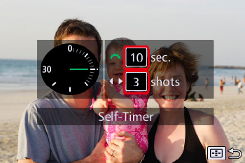 The self-timer can be used to shoot a group photo that includes the photographer or to prevent camera shake when pressing the shutter button.