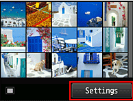 4. Select the photo(s) you would like to print, and press the right function button to select [ Settings ].