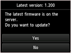 (7) The message will be displayed, asking you if you wish to update the firmware. Select [ Yes ] , and press [ OK ].