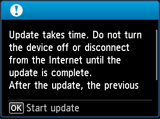 When the printer is connected to the Internet and if the latest firmware is available on the server, the printer will give the following message: