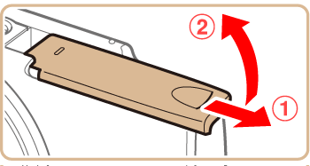 To insert the included battery and a memory card (sold separately), follow these steps.