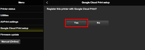 7. When the confirmation screen to register the printer is displayed, select [ Yes ].