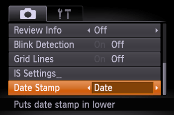 Adding a Date Stamp when Shooting (PowerShot D30)