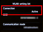 When "WLAN setting list" is displayed, confirm that "Active" is displayed in "Connection".