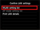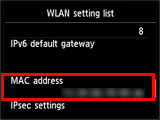 When "WLAN setting list" is displayed, confirm the MAC address using the