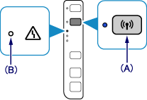 1. Hold down the Wi-Fi button (A) on the printer until the Alarm lamp (B) flashes 2 times, then release the Wi-Fi button after the second flash.