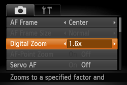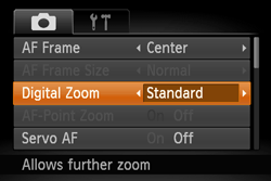 1. Press the <MENU> button, choose [Digital Zoom] on the [Shooting] tab (
