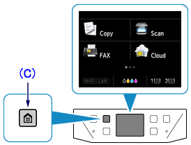 4. Press the HOME button (C) on the printer.
