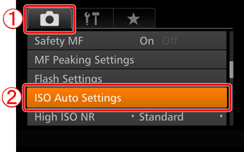 You can also access the [ISO Auto Settings] screen when choosing the ISO speed in the FUNC. menu, by pressing the <MENU> button.