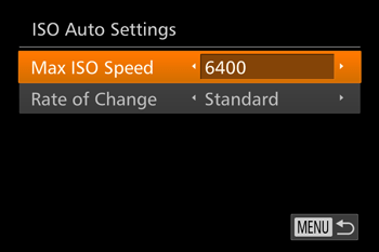 Also, with [ISO AUTO] selected, you can set the maximum ISO speed, or select the rate of change.