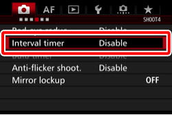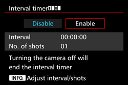 - You can stop the interval timer shooting by selecting [Disable] or turning the power switch to <OFF>.