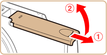 Insert the included battery pack and a memory card (sold separately). Note that before using a new memory card (or a memory card formatted in another device), you should format the memory card with this camera.
