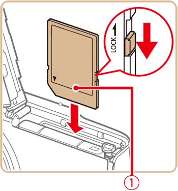 : Battery Lock3. Check the card’s write-protect tab and insert the memory card.