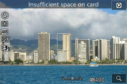 When the memory card becomes full, the following screen will be displayed and the shutter will not be released. Please use a different memory card, or initialize the card.