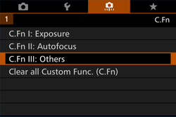 ] button.・ At the bottom of the screen, the current Custom Function settings are indicated below the respective function numbers.