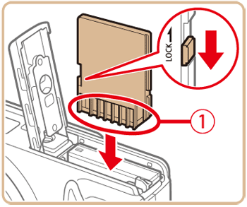 - Make sure the memory card is facing the right way when you insert it. Inserting memory cards facing the wrong way may damage the camera.