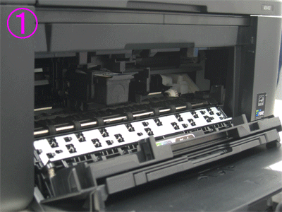 - The inside of the machine may be stained with ink. Be careful not to stain your hands or clothing when replacing the FINE cartridge. You can easily wipe off the ink from the inside of the machine with tissue paper or the like.