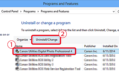 Before uninstalling (deleting) Digital Photo Professional Ver.4.x, confirm that all open programs have been closed.