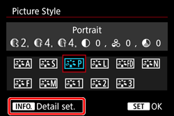 ] dial to select a Picture Style, then press the [ INFO. ] button.