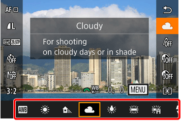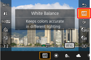 For a list of shooting modes in which the white balance setting can be changed, please refer to the table at the bottom of the page.