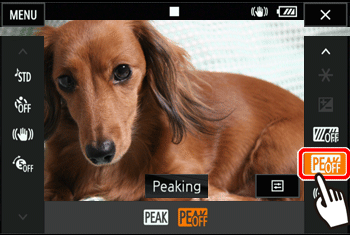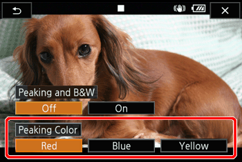 When peaking is activated, the edges of objects in focus will be highlighted in red, blue, or yellow on the screen. In addition, you can choose to switch the screen to black and white further emphasizing the edges.