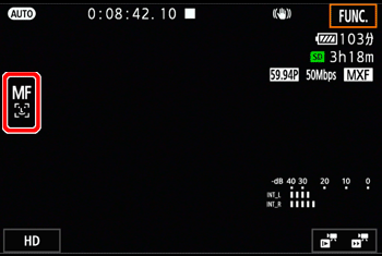 - The gray line in the button will turn orange and the camcorder will change to manual focus mode.