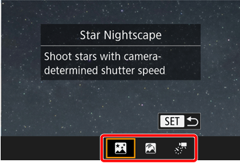 2 ] tab > [Night Display] > [On] before shooting. - To make stars brighter, choose MENU > [
