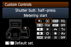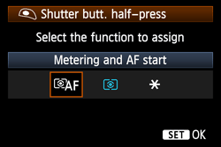 3. The [Shutter butt. half-press] screen will appear, select [Metering and AF start