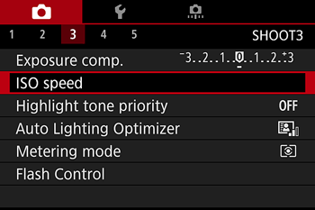 - 3] tab of the menu and selecting [ISO speed].If you want to select speeds up to [H] (equivalent to ISO 25600), go to the menu, choose [C.Fn I:Exposure] from the [