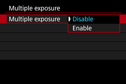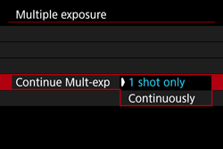 - With [Continuously], multiple-exposure shooting continues until the setting in step 5 is set to [Disable].
