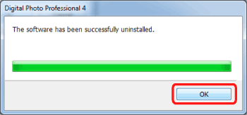 3. When the following dialog box appears, click [OK] to start uninstalling Digital Photo Professional 4.