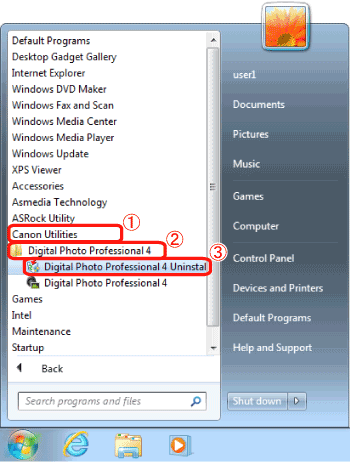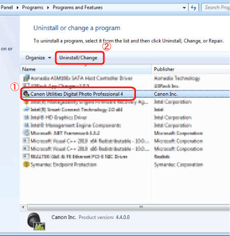 Uninstalling (Deleting) and Reinstalling Digital Photo Professional Ver.4.x (Windows 7)