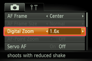 ] tab, and then set [Digital Zoom] to either [1.6x] or [2.0x].