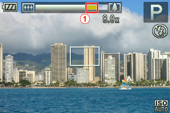 Depending on the resolution settings and the digital zoom factor, the [Zoom Bar] will be displayed in yellow [