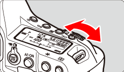 3. While looking at the top LCD panel or in the viewfinder, turn the <