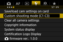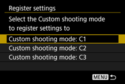 ] tab, select [Custom shooting mode (C1-C3)], then press <