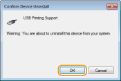 Delete the USB class driver when it is not possible to install the printer driver correctly when using a USB connection. Note that even if you delete the USB class driver, it will be installed again automatically when you connect the printer and your computer with a USB cable.