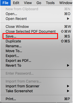 2. The OS Preview application will start. Select [ File ] > [ Save... ].