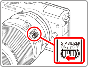The Image Stabilizer will operate when the lens’ [STABILIZER] (Image Stabilizer switch) is set to [ON], as shown in the image below.