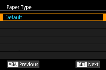 - The screen for setting the paper type appears.