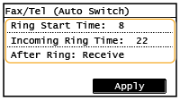 Enables you to specify the duration during which the machine determines whether an incoming call is a fax or a telephone call.