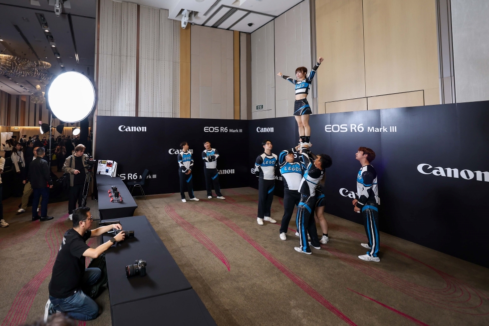 EOS R6 Mark III 的電子快門[1]帶來最高每秒 40 張[2]高速連拍及支援無裁切 4K DCI/UHD 最高 120p MP4 (有音訊[3])。Canon 邀請了 Legos Cheerleading Team 競技啦啦隊帶來精彩表演,配合技巧動作及舞蹈,讓來賓親身體驗以 EOS R6 Mark III 捕捉決定性瞬間。