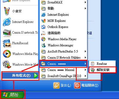 確保使用「開始」功能表中的「解除安裝」以解除安裝 MP 驅動程式。