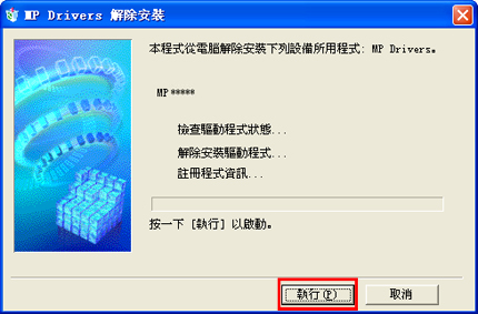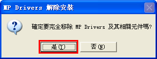 如果電腦有常駐反病毒軟體,請在解除安裝 MP 驅動程式前關閉該程式。
